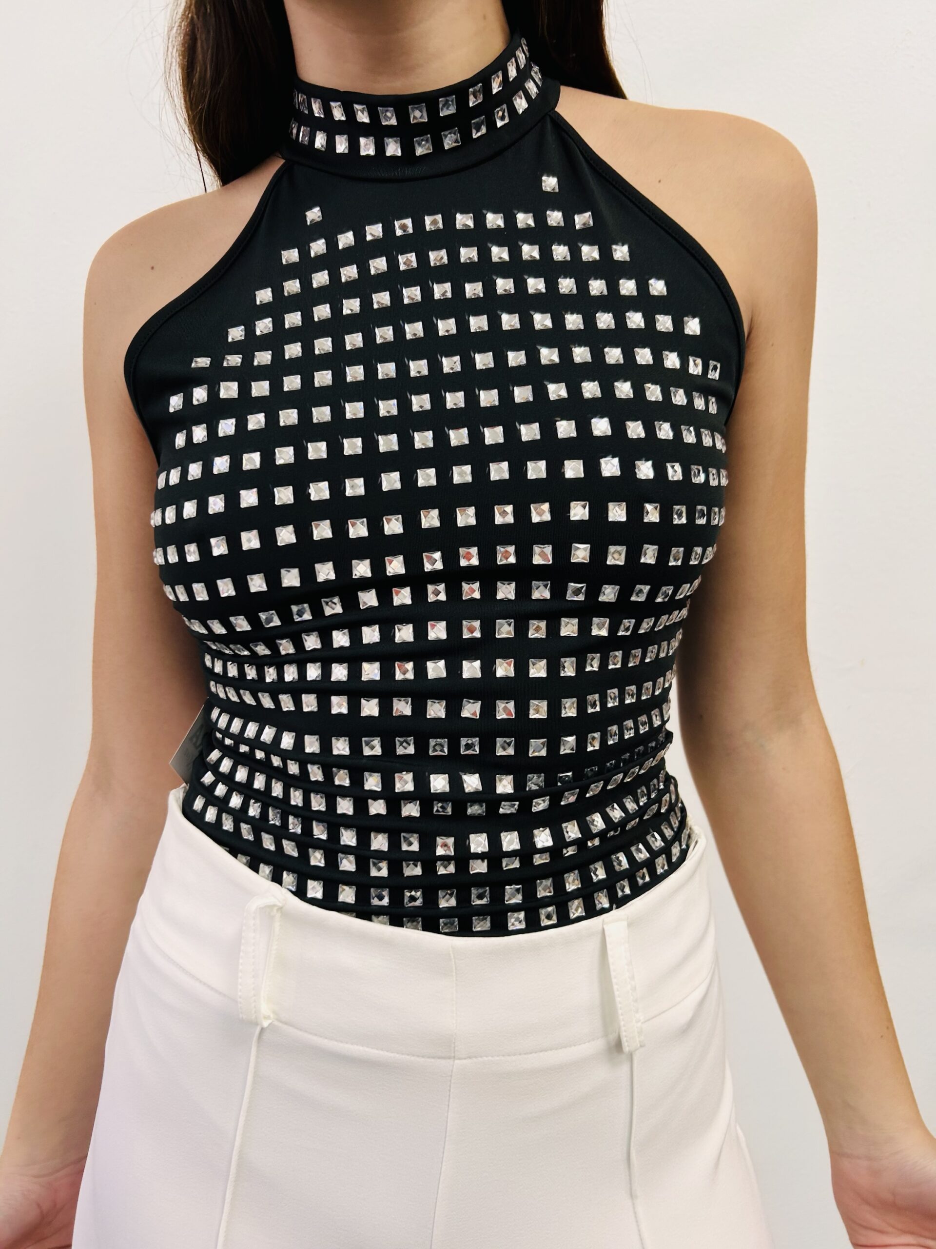 Top con brillos, tejido suave y elasticado para un calce perfecto. Liviano, cómodo y con un toque glam ideal para fiestas, salidas o combinar con jeans y faldas